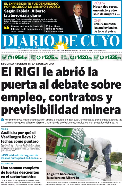 Diario de Cuyo | HOME | Edición impresa Tapa Edición 07 de Agosto del 2024 Por Redacción Diario de Cuyo 07/08/2024 · 4:00 Escuchar la noticia Escuchar la noticia Your browser doesn’t support HTML5 audio Ver los comentarios ›