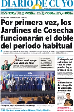 Diario de Cuyo | HOME | Edición impresa Tapa Edición 07 de Diciembre del 2024 Por Redacción Diario de Cuyo 07/12/2024 · 4:00 Escuchar la noticia Escuchar la noticia Your browser doesn’t support HTML5 audio Ver los comentarios ›