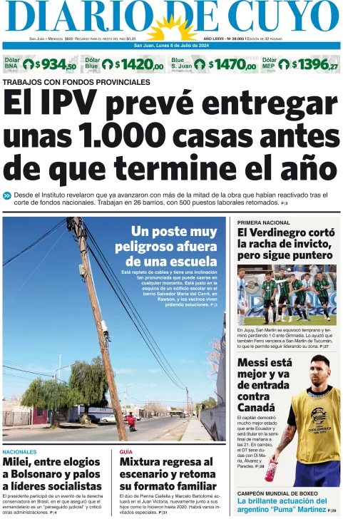 Diario de Cuyo | HOME | Edición impresa Tapa Edición 08 de Julio de 2024 Por Redacción Diario de Cuyo 08/07/2024 · 3:30 Escuchar la noticia Escuchar la noticia Your browser doesn’t support HTML5 audio Ver los comentarios ›