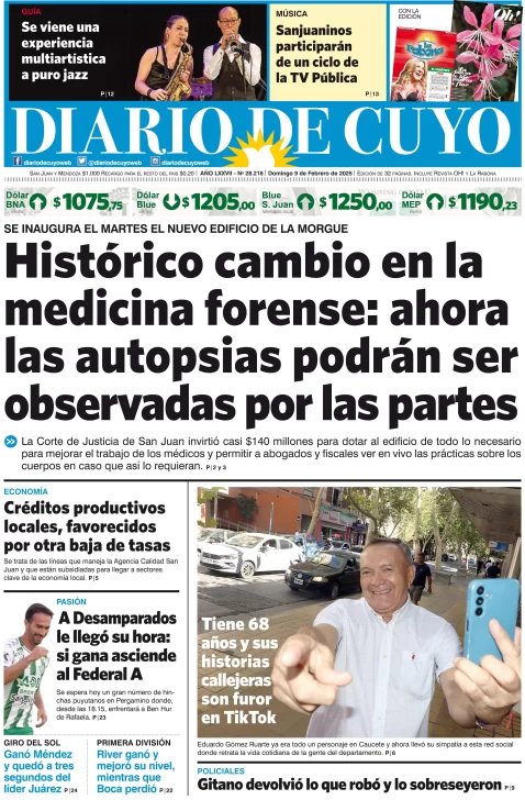 Diario de Cuyo | HOME | Edición impresa Tapa Edición 09 de Febrero del 2025 Por Redacción Diario de Cuyo 09/02/2025 · 4:00 Escuchar la noticia Escuchar la noticia Your browser doesn’t support HTML5 audio Ver los comentarios ›
