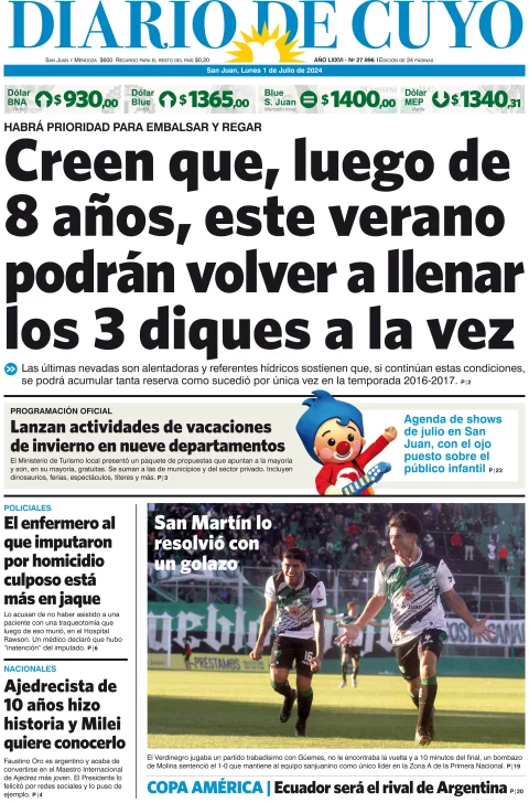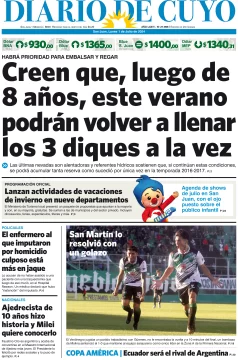 Diario de Cuyo | HOME | Edición impresa Tapa Edición 1 de Julio de 2024 Por Redacción Diario de Cuyo 01/07/2024 · 4:00 Escuchar la noticia Escuchar la noticia Your browser doesn’t support HTML5 audio Ver los comentarios ›