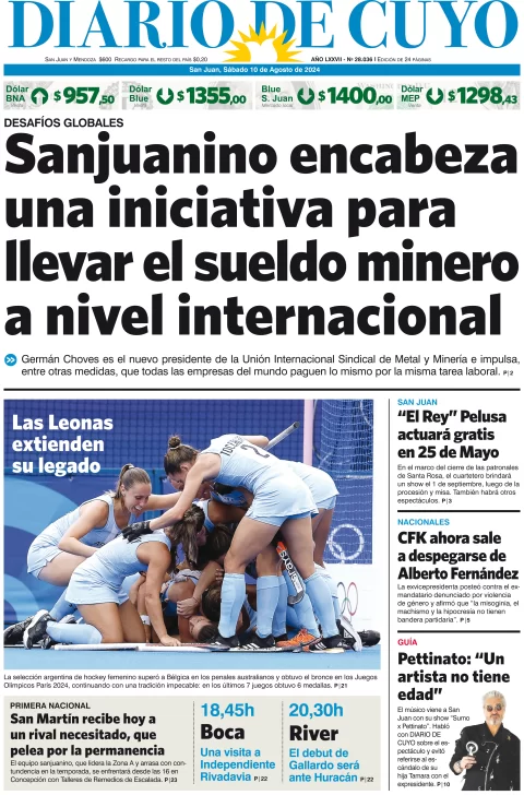 Diario de Cuyo | HOME | Edición impresa Tapa Edición 10 de Agosto del 2024 Por Redacción Diario de Cuyo 10/08/2024 · 4:00 Escuchar la noticia Escuchar la noticia Your browser doesn’t support HTML5 audio Ver los comentarios ›