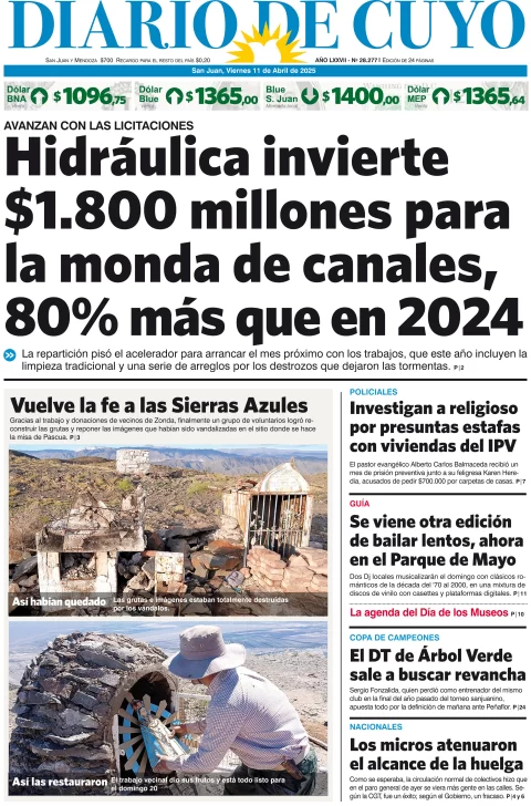 Diario de Cuyo | HOME | Edición impresa Tapa Edición 11 de Abril de 2025 Por Redacción Diario de Cuyo 11/04/2025 · 4:00 Escuchar la noticia Escuchar la noticia Your browser doesn’t support HTML5 audio Ver los comentarios ›
