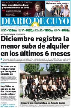Diario de Cuyo | HOME | Edición impresa Tapa Edición 11 de Diciembre de 2024 Por Redacción Diario de Cuyo 11/12/2024 · 4:00 Escuchar la noticia Escuchar la noticia Your browser doesn’t support HTML5 audio Ver los comentarios ›