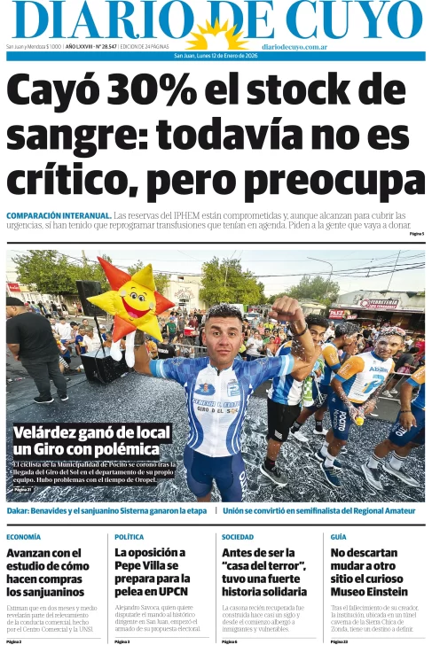 Diario de Cuyo | HOME | Edición impresa Tapa Edición 12 de Enero 2026 Por Redacción Diario de Cuyo 12/01/2026 · 4:00 Escuchar la noticia Escuchar la noticia Your browser doesn’t support HTML5 audio Ver los comentarios ›