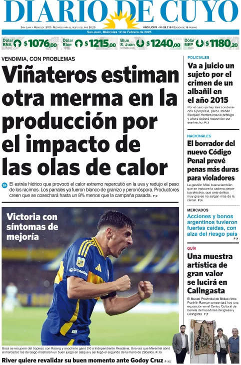 Diario de Cuyo | HOME | Edición impresa Tapa Edición 12 de Febrero del 2025 Por Redacción Diario de Cuyo 12/02/2025 · 4:00 Escuchar la noticia Escuchar la noticia Your browser doesn’t support HTML5 audio Ver los comentarios ›