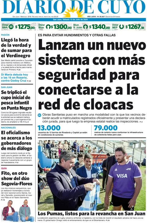 Diario de Cuyo | HOME | Edición impresa Tapa Edición 12 de Julio de 2025 Por Redacción Diario de Cuyo 12/07/2025 · 4:04 Escuchar la noticia Escuchar la noticia Your browser doesn’t support HTML5 audio Ver los comentarios ›