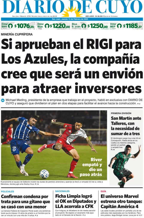 Diario de Cuyo | HOME | Edición impresa Tapa Edición 13 de Febrero del 2025 Por Redacción Diario de Cuyo 13/02/2025 · 4:00 Escuchar la noticia Escuchar la noticia Your browser doesn’t support HTML5 audio Ver los comentarios ›