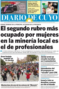 Diario de Cuyo | HOME | Edición impresa Tapa Edición 15 de Junio de 2025 Por Redacción Diario de Cuyo 15/06/2025 · 4:00 Escuchar la noticia Escuchar la noticia Your browser doesn’t support HTML5 audio Ver los comentarios ›