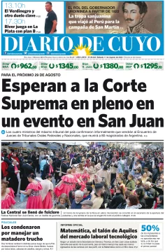 Diario de Cuyo | HOME | Edición impresa Tapa Edición 17 de Agosto del 2024 Por Redacción Diario de Cuyo 17/08/2024 · 4:00 Escuchar la noticia Escuchar la noticia Your browser doesn’t support HTML5 audio Ver los comentarios ›