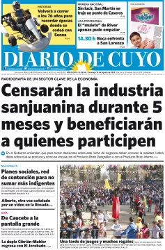 Diario de Cuyo | HOME | Edición impresa Tapa Edición 18 de Agosto del 2024 Por Redacción Diario de Cuyo 18/08/2024 · 5:00 Escuchar la noticia Escuchar la noticia Your browser doesn’t support HTML5 audio Ver los comentarios ›