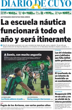 Diario de Cuyo | HOME | Edición impresa Tapa Edición 18 de Noviembre de 2024 Por Redacción Diario de Cuyo 18/11/2024 · 4:00 Escuchar la noticia Escuchar la noticia Your browser doesn’t support HTML5 audio Ver los comentarios ›