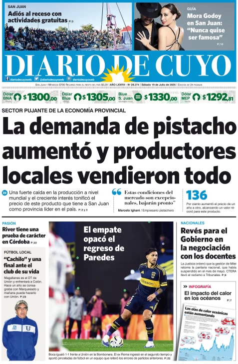 Diario de Cuyo | HOME | Edición impresa Tapa Edición 19 de Julio del 2025 Por Redacción Diario de Cuyo 19/07/2025 · 4:00 Escuchar la noticia Escuchar la noticia Your browser doesn’t support HTML5 audio Ver los comentarios ›
