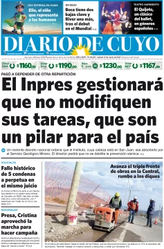 Diario de Cuyo | HOME | Edición impresa Tapa Edición 19 de Junio de 2025 Por Redacción Diario de Cuyo 19/06/2025 · 4:00 Escuchar la noticia Escuchar la noticia Your browser doesn’t support HTML5 audio Ver los comentarios ›