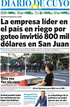 Diario de Cuyo | HOME | Edición impresa Tapa Edición 20 de marzo de 2025 Por Redacción Diario de Cuyo 20/03/2025 · 4:00 Escuchar la noticia Escuchar la noticia Your browser doesn’t support HTML5 audio Ver los comentarios ›