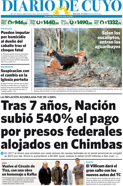 Diario de Cuyo | HOME | Edición impresa Tapa Edición 23 de Julio del 2024 Por Redacción Diario de Cuyo 23/07/2024 · 4:00 Escuchar la noticia Escuchar la noticia Your browser doesn’t support HTML5 audio Ver los comentarios ›