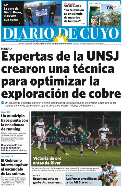Diario de Cuyo | HOME | Edición impresa Tapa Edición 24 de Agosto de 2025 Por Redacción Diario de Cuyo 24/08/2025 · 4:00 Escuchar la noticia Escuchar la noticia Your browser doesn’t support HTML5 audio Ver los comentarios ›