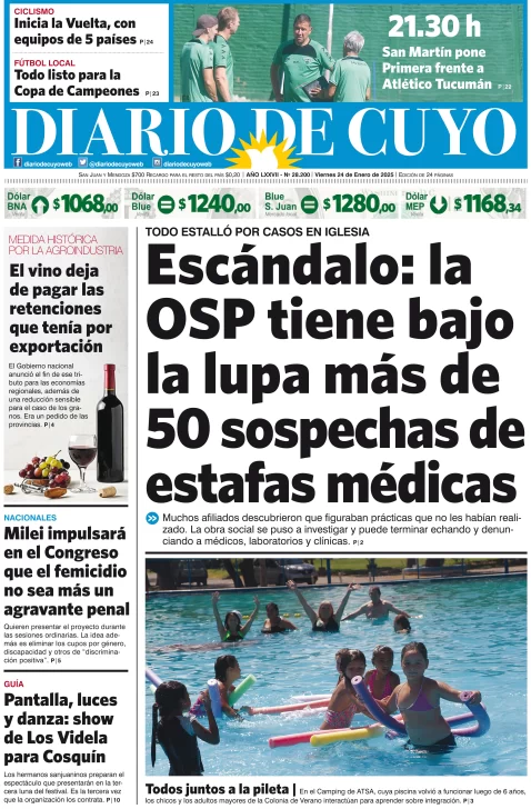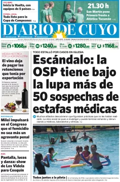 Diario de Cuyo | HOME | Edición impresa Tapa Edición 24 de Enero de 2025 Por Redacción Diario de Cuyo 24/01/2025 · 4:00 Escuchar la noticia Escuchar la noticia Your browser doesn’t support HTML5 audio Ver los comentarios ›