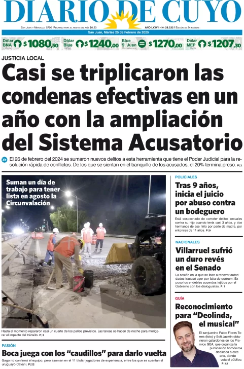 Diario de Cuyo | HOME | Edición impresa Tapa Edición 25 de Febrero de 2025 Por Redacción Diario de Cuyo 25/02/2025 · 4:00 Escuchar la noticia Escuchar la noticia Your browser doesn’t support HTML5 audio Ver los comentarios ›