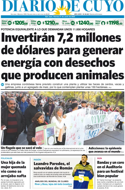 Diario de Cuyo | HOME | Edición impresa Tapa Edición 27 de Junio de 2025 Por Redacción Diario de Cuyo 27/06/2025 · 4:00 Escuchar la noticia Escuchar la noticia Your browser doesn’t support HTML5 audio Ver los comentarios ›