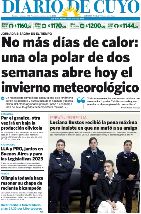 Diario de Cuyo | HOME | Edición impresa Tapa Edición 27 de Mayo de 2025 Por Redacción Diario de Cuyo 27/05/2025 · 4:00 Escuchar la noticia Escuchar la noticia Your browser doesn’t support HTML5 audio Ver los comentarios ›