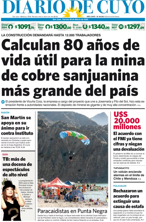 Diario de Cuyo | HOME | Edición impresa Tapa Edición 28 de Marzo de 2025 Por Redacción Diario de Cuyo 28/03/2025 · 4:00 Escuchar la noticia Escuchar la noticia Your browser doesn’t support HTML5 audio Ver los comentarios ›