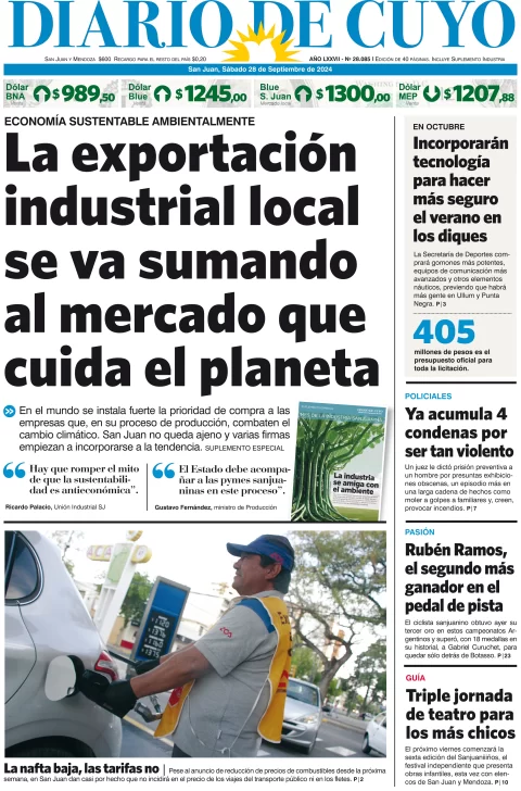 Diario de Cuyo | HOME | Edición impresa Tapa Edición 28 de Septiembre del 2024 Por Redacción Diario de Cuyo 28/09/2024 · 4:00 Escuchar la noticia Escuchar la noticia Your browser doesn’t support HTML5 audio Ver los comentarios ›