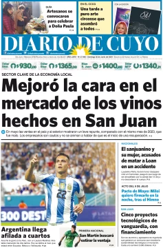 Diario de Cuyo | HOME | Edición impresa Tapa Edición 30 de Junio del 2024 Por Redacción Diario de Cuyo 30/06/2024 · 4:00 Escuchar la noticia Escuchar la noticia Your browser doesn’t support HTML5 audio Ver los comentarios ›