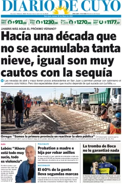 Diario de Cuyo | HOME | Edición impresa Tapa Edición 30 de Mayo de 2024 Por Redacción Diario de Cuyo 30/05/2024 · 4:00 Escuchar la noticia Escuchar la noticia Your browser doesn’t support HTML5 audio Ver los comentarios ›