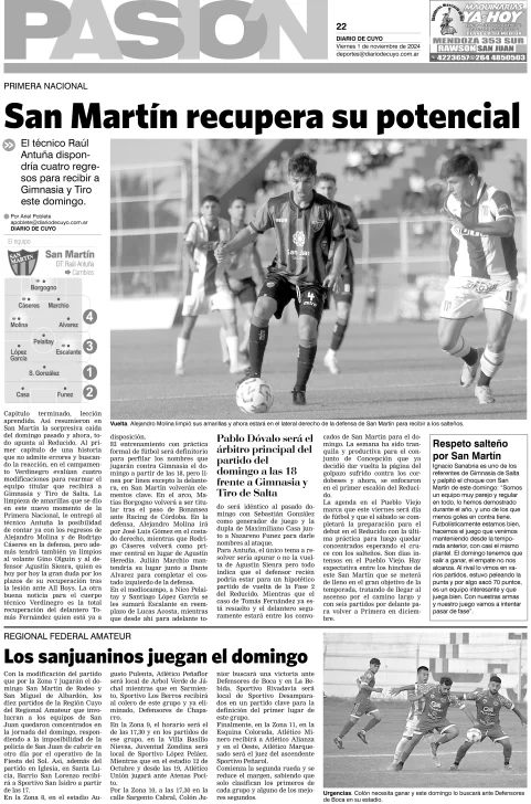 Diario de Cuyo | HOME | Edición impresa Tapa Pasión 01 de Noviembre de 2024 Por Redacción Diario de Cuyo 01/11/2024 · 4:00 Escuchar la noticia Escuchar la noticia Your browser doesn’t support HTML5 audio Ver los comentarios ›