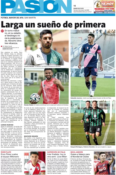 Diario de Cuyo | HOME | Edición impresa Tapa Pasión 03 de Enero de 2025 Por Redacción Diario de Cuyo 03/01/2025 · 4:00 Escuchar la noticia Escuchar la noticia Your browser doesn’t support HTML5 audio Ver los comentarios ›