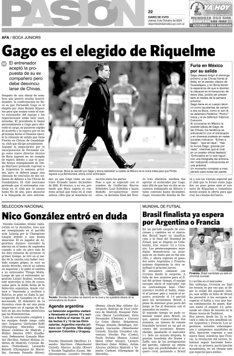 Diario de Cuyo | HOME | Edición impresa Tapa Pasión 03 de Octubre de 2024 Por Redacción Diario de Cuyo 03/10/2024 · 4:00 Escuchar la noticia Escuchar la noticia Your browser doesn’t support HTML5 audio Ver los comentarios ›