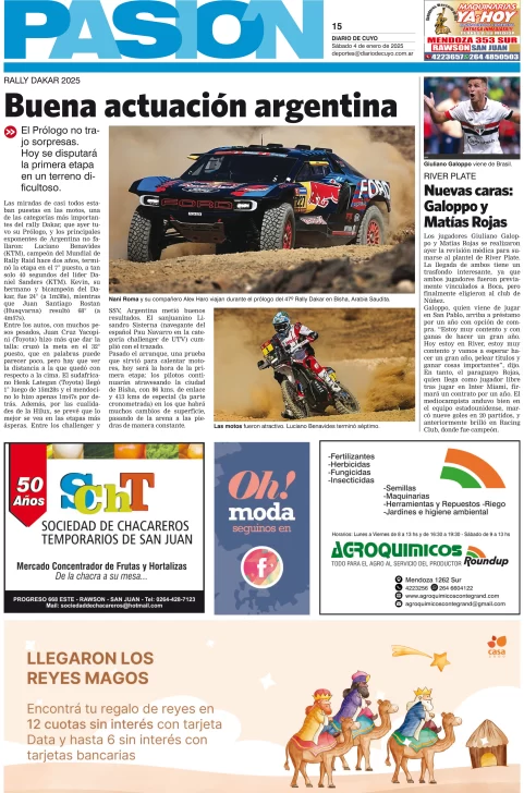 Diario de Cuyo | HOME | Edición impresa Tapa Pasión 04 de Enero de 2025 Por Redacción Diario de Cuyo 04/01/2025 · 4:00 Escuchar la noticia Escuchar la noticia Your browser doesn’t support HTML5 audio Ver los comentarios ›