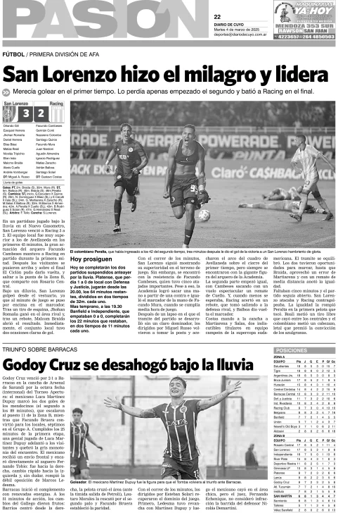 Diario de Cuyo | HOME | Edición impresa Tapa Pasión 04 de Marzo de 2025 Por Redacción Diario de Cuyo 04/03/2025 · 4:00 Escuchar la noticia Escuchar la noticia Your browser doesn’t support HTML5 audio Ver los comentarios ›