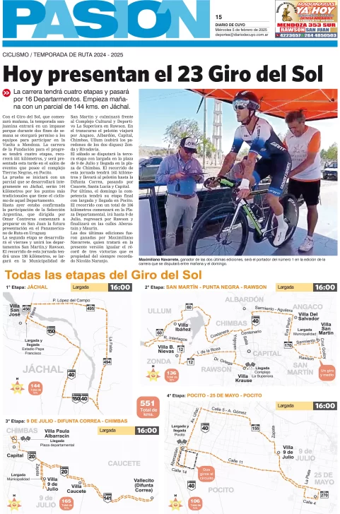 Diario de Cuyo | HOME | Edición impresa Tapa Pasión 05 de Febrero del 2025 Por Redacción Diario de Cuyo 05/02/2025 · 4:00 Escuchar la noticia Escuchar la noticia Your browser doesn’t support HTML5 audio Ver los comentarios ›