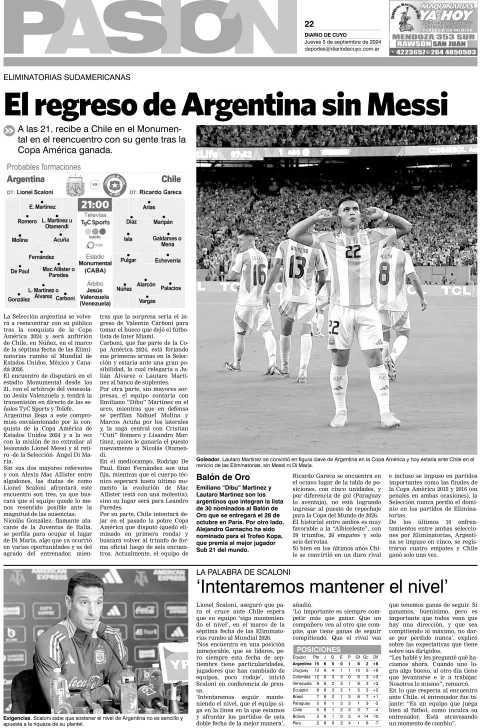 Diario de Cuyo | HOME | Edición impresa Tapa Pasión 05 de Septiembre del 2024 Por Redacción Diario de Cuyo 05/09/2024 · 4:00 Escuchar la noticia Escuchar la noticia Your browser doesn’t support HTML5 audio Ver los comentarios ›