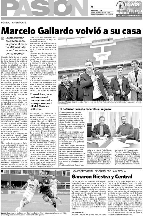 Diario de Cuyo | HOME | Edición impresa Tapa Pasión 06 de Agosto del 2024 Por Redacción Diario de Cuyo 06/08/2024 · 4:00 Escuchar la noticia Escuchar la noticia Your browser doesn’t support HTML5 audio Ver los comentarios ›