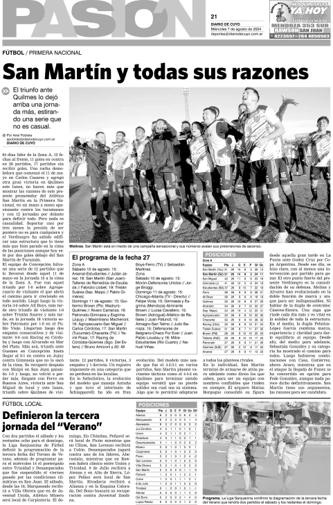 Diario de Cuyo | HOME | Edición impresa Tapa Pasión 07 de Agosto del 2024 Por Redacción Diario de Cuyo 07/08/2024 · 4:00 Escuchar la noticia Escuchar la noticia Your browser doesn’t support HTML5 audio Ver los comentarios ›