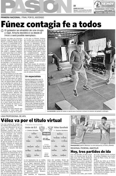 Diario de Cuyo | HOME | Edición impresa Tapa Pasión 07 de Diciembre del 2024 Por Redacción Diario de Cuyo 07/12/2024 · 4:00 Escuchar la noticia Escuchar la noticia Your browser doesn’t support HTML5 audio Ver los comentarios ›
