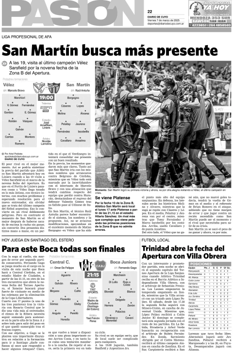 Diario de Cuyo | HOME | Edición impresa Tapa Pasión 07 de Marzo de 2025 Por Redacción Diario de Cuyo 07/03/2025 · 4:00 Escuchar la noticia Escuchar la noticia Your browser doesn’t support HTML5 audio Ver los comentarios ›