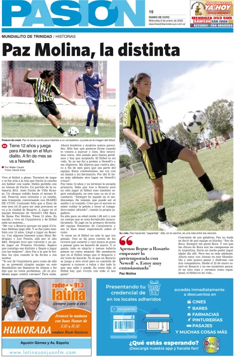 Diario de Cuyo | HOME | Edición impresa Tapa Pasión 08 de Enero de 2025 Por Redacción Diario de Cuyo 08/01/2025 · 4:00 Escuchar la noticia Escuchar la noticia Your browser doesn’t support HTML5 audio Ver los comentarios ›