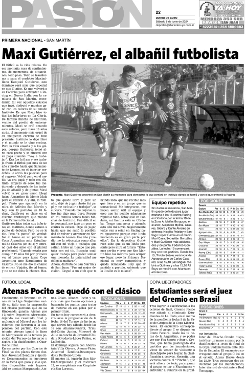 Diario de Cuyo | HOME | Edición impresa Tapa Pasión 08 de Junio del 2024 Por Redacción Diario de Cuyo 08/06/2024 · 4:00 Escuchar la noticia Escuchar la noticia Your browser doesn’t support HTML5 audio Ver los comentarios ›