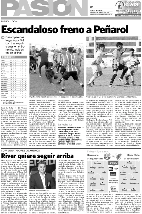 Diario de Cuyo | HOME | Edición impresa Tapa Pasión 08 de Mayo de 2025 Por Redacción Diario de Cuyo 08/05/2025 · 4:00 Escuchar la noticia Escuchar la noticia Your browser doesn’t support HTML5 audio Ver los comentarios ›