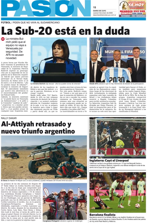 Diario de Cuyo | HOME | Edición impresa Tapa Pasión 09 de Enero de 2025 Por Redacción Diario de Cuyo 09/01/2025 · 4:00 Escuchar la noticia Escuchar la noticia Your browser doesn’t support HTML5 audio Ver los comentarios ›