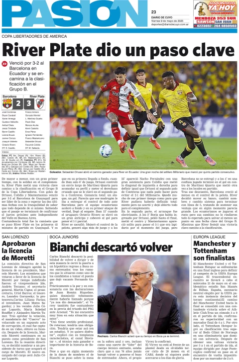 Diario de Cuyo | HOME | Edición impresa Tapa Pasión 09 de Mayo de 2025 Por Redacción Diario de Cuyo 09/05/2025 · 4:00 Escuchar la noticia Escuchar la noticia Your browser doesn’t support HTML5 audio Ver los comentarios ›