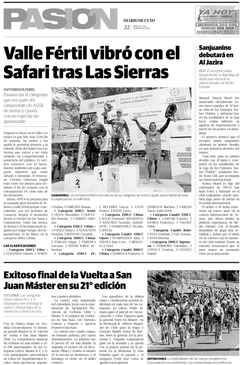 Diario de Cuyo | HOME | Edición impresa Tapa Pasion 10 de Febrero 2026 Por Redacción Diario de Cuyo 10/02/2026 · 4:00 Escuchar la noticia Escuchar la noticia Your browser doesn’t support HTML5 audio Ver los comentarios ›