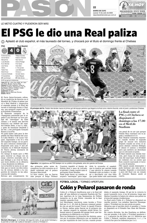 Diario de Cuyo | HOME | Edición impresa Tapa Pasión 10 de Julio de 2025 Por Redacción Diario de Cuyo 10/07/2025 · 4:00 Escuchar la noticia Escuchar la noticia Your browser doesn’t support HTML5 audio Ver los comentarios ›