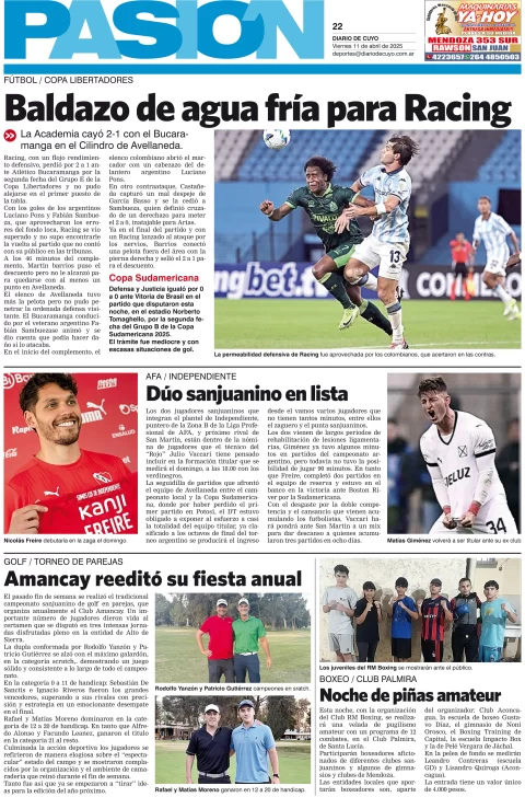 Diario de Cuyo | HOME | Edición impresa Tapa Pasión 11 de Abril de 2025 Por Redacción Diario de Cuyo 11/04/2025 · 4:00 Escuchar la noticia Escuchar la noticia Your browser doesn’t support HTML5 audio Ver los comentarios ›