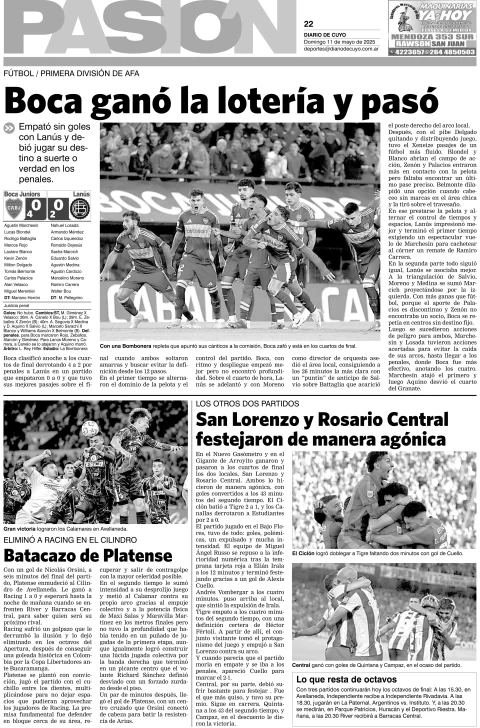 Diario de Cuyo | HOME | Edición impresa Tapa Pasión 11 de Mayo de 2025 Por Redacción Diario de Cuyo 11/05/2025 · 4:00 Escuchar la noticia Escuchar la noticia Your browser doesn’t support HTML5 audio Ver los comentarios ›