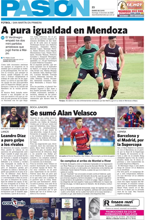 Diario de Cuyo | HOME | Edición impresa Tapa Pasión 12 de Enero de 2025 Por Redacción Diario de Cuyo 12/01/2025 · 4:00 Escuchar la noticia Escuchar la noticia Your browser doesn’t support HTML5 audio Ver los comentarios ›